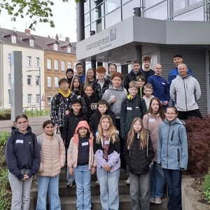 Auf der Kläranlage der Stadtentwässerung wurde anschließend anschaulich erläutert, welche Schritte notwendig sind, um aus verschmutztem Wasser wieder sauberes zu gewinnen. Dieser Prozess findet tagtäglich im Verborgenen statt, ist aber unverzichtbar für Verbraucherinnen, Verbraucher und Umwelt. Großen Eindruck hinterließ auch der Spülwagen, mit dessen Technik das Abwassernetz gereinigt wird. Einmal "Chef" im Fahrerhaus zu sein, war ein echtes Highlight.